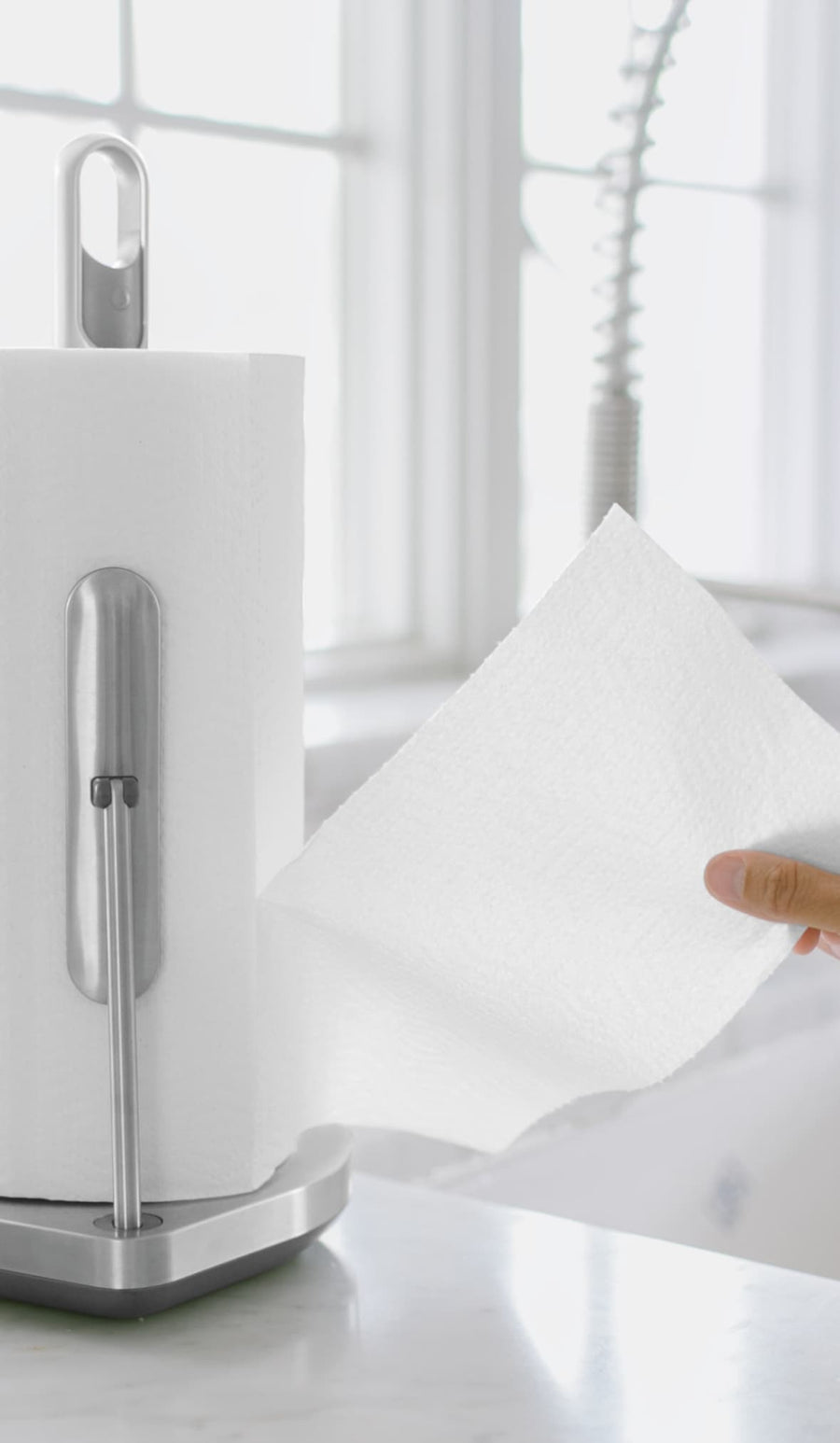 We zijn geobsedeerd door details. Onze houders voor papieren handdoekjes oefenen precies de juiste druk uit op de rol, zodat je ze gemakkelijk met één hand kunt afscheuren.