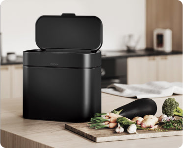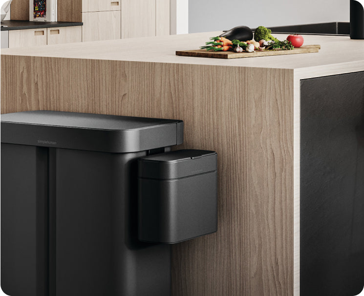 Het compostbakje kan eenvoudig aan de zijkant van de afvalbakken van Simplehuman worden geplaatst, zodat je je biologische afval sneller en efficiƫnter kunt scheiden.