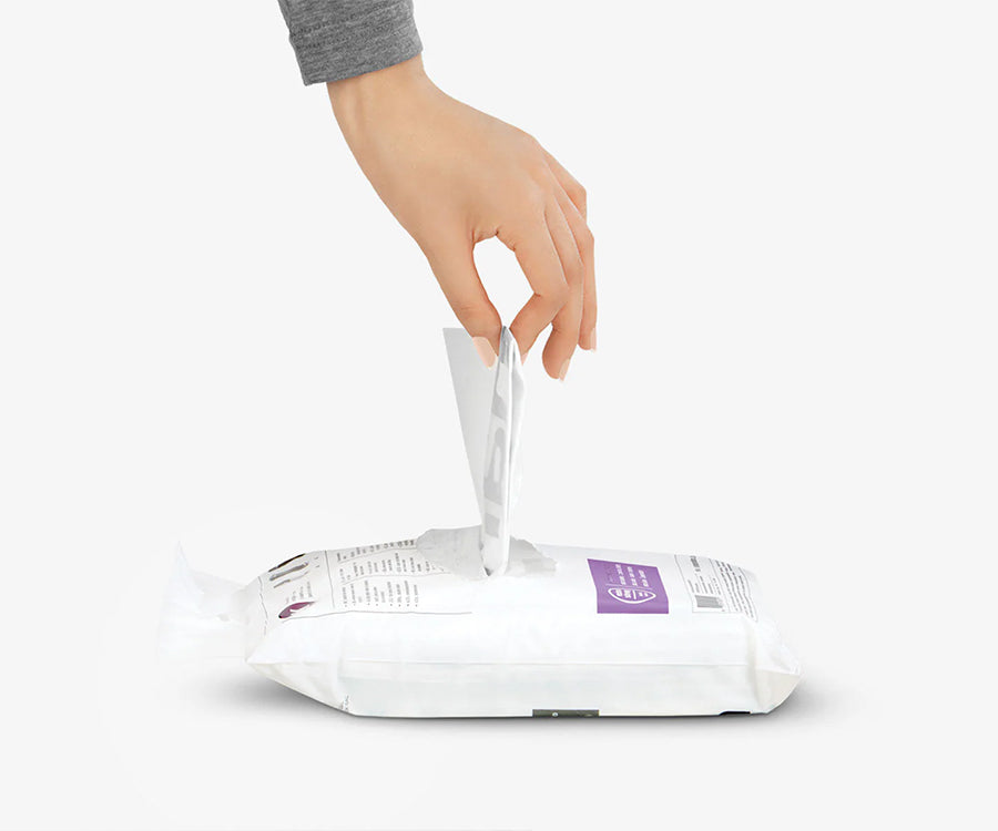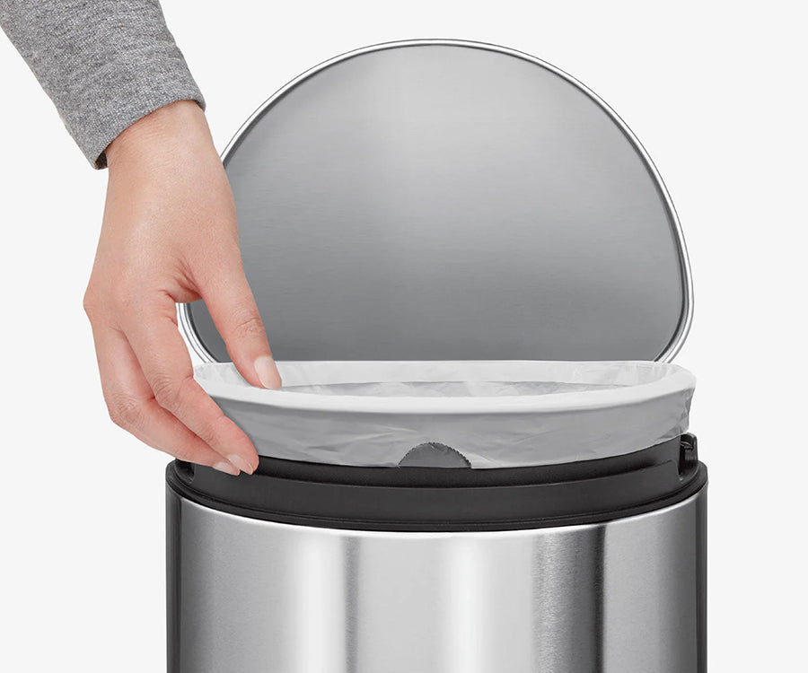 Onze speciale afvalzakken passen precies in de afvalbakken, zodat ze niet wegglijden en netjes uit het zicht blijven als het deksel gesloten is.