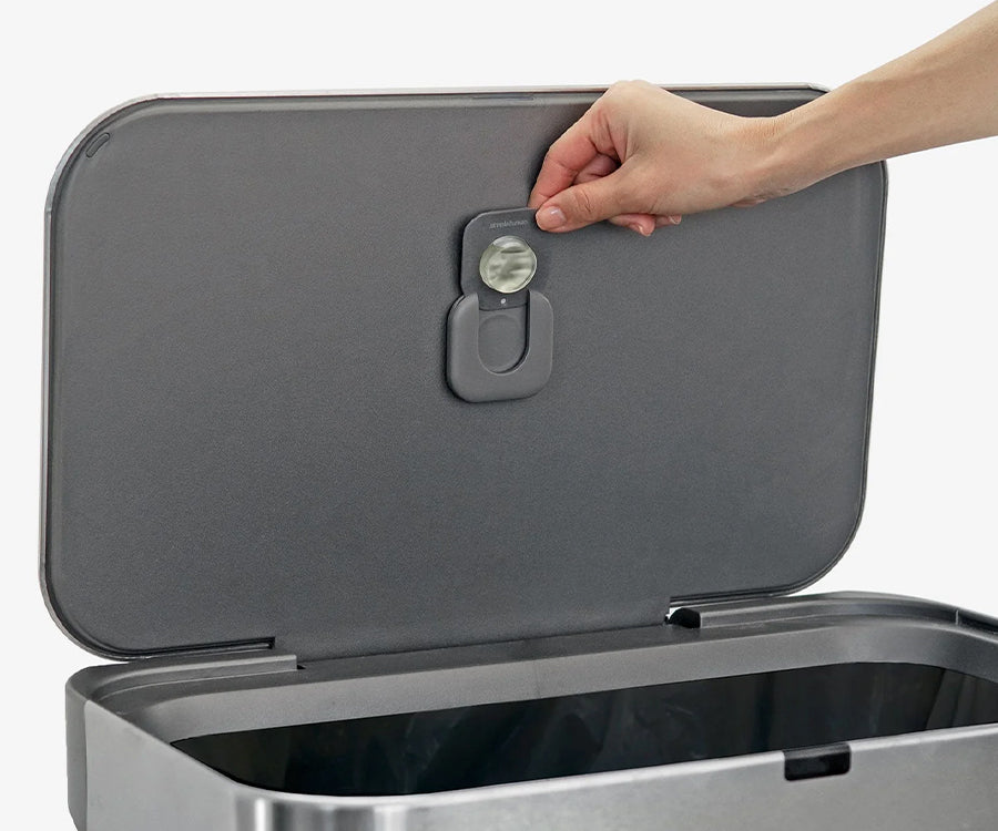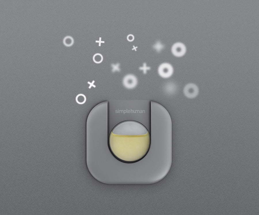 Ons 100% natuurlijke odorsorb-capsule past discreet onder het deksel van je Simplehuman-afvalbak, zodat nare geurtjes verleden tijd zijn.