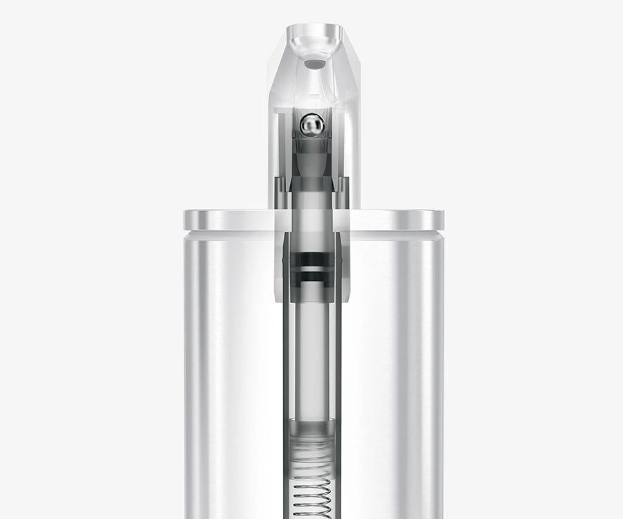 Ons innovatieve ventielontwerp met omgekeerde stroom houdt de zeep na elke zeepafgifte eventjes weg bij de tuit, zodat alles schoon en lekvrij blijft.