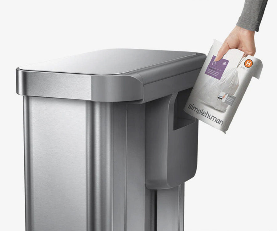 Ons unieke zakkenrandsysteem is een snellere, schonere manier om afval weg te gooien! Het buitendeksel kan worden opgetild voor eenvoudige toegang tot de zak, waardoor je het deksel niet van de afvalbak hoeft af te halen en er geen onhandige binnenemmer nodig is. Als je klaar bent, sluit het buitendeksel over de afvalzak, zodat deze niet te zien is.