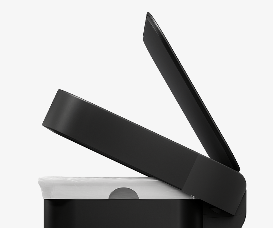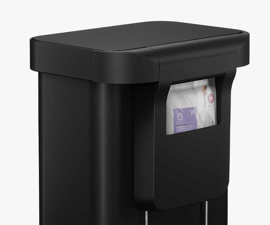 Our liner rim system makes trash faster and neater. Simply lift the lid for easy access, then close it to keep the liner tidy and out of sight.
