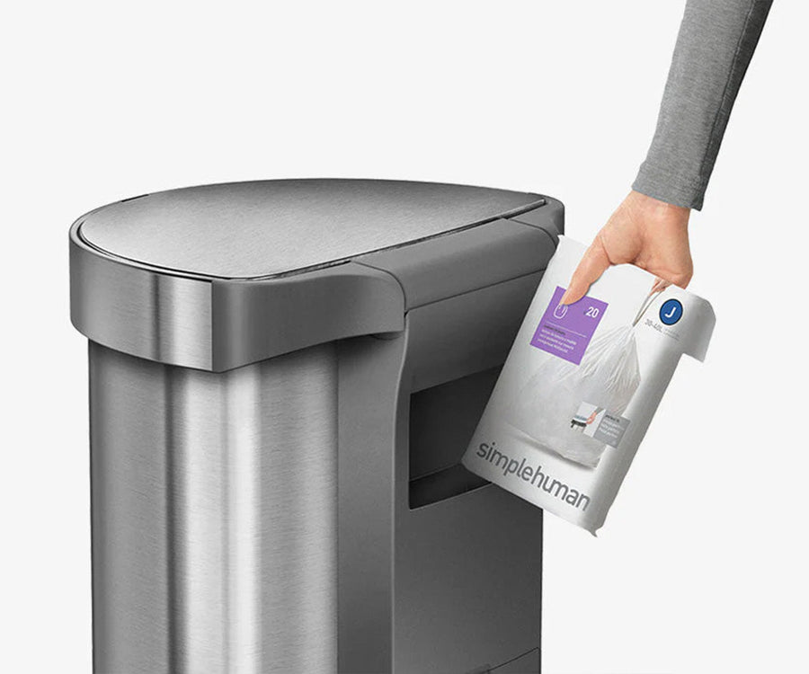 Onze code J - afvalzakken op maat passen perfect in deze afvalbak, wat betekent dat ze niet wegglijden of uitsteken, waardoor de afvalbak netter en schoner oogt. Ook zijn ze dubbel gezoomd en extra dik, waardoor je ze tot de rand met afval kunt vullen zonder bang te hoeven zijn dat ze gaan scheuren of lekken.
