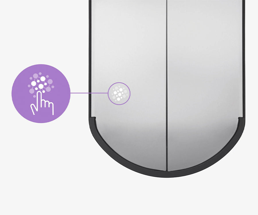 Onze onzichtbare zilver-ion-coating gaat vingerafdrukken en de verspreiding van bacteriën tegen zonder de natuurlijke glans van het staal aan te tasten (alleen van toepassing op het geborstelde model).