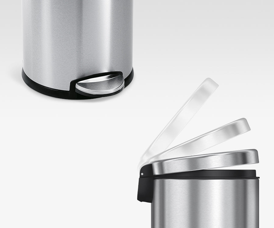 Ons stevige stalen pedaal is zo ontworpen dat het meer dan 150.000 keer kan worden ingedrukt. Dat is 20 jaar lang meer dan 20 keer per dag. Bovendien wordt de beweging van het deksel geregeld door onze gepatenteerde shox-technologie, zodat het langzaam en geruisloos sluit.