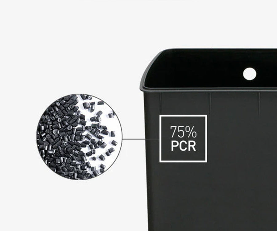 Onze zwarte binnenemmers bestaan voor minstens 75% uit PCR-plastic (Post-Consumer Recycled).
