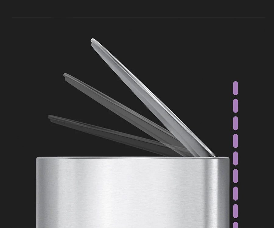 Het stevige pedaal is zo ontworpen dat het meer dan 150.000 keer kan worden ingedrukt. Dat is 20 jaar lang meer dan 20 keer per dag. Bovendien wordt de beweging van het deksel geregeld door onze gepatenteerde shox-technologie, zodat het langzaam en geruisloos sluit.