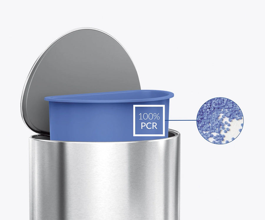 De binnenemmer, die volledig is gemaakt van PCR-plastic (Post-Consumer Recycled), kan eruit worden gehaald voor een snelle vervanging van afvalzakken en een eenvoudige reiniging.