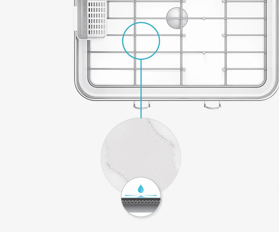 Met onze afdruiprekken laat je water snel en netjes weglopen – zonder dat er plasjes, watervlekken of restanten overblijven. We hebben zelfs een zwenktuit waarmee je water rechtstreeks in de gootsteen kunt laten lopen, ongeacht hoe je het afdruiprek neerzet.