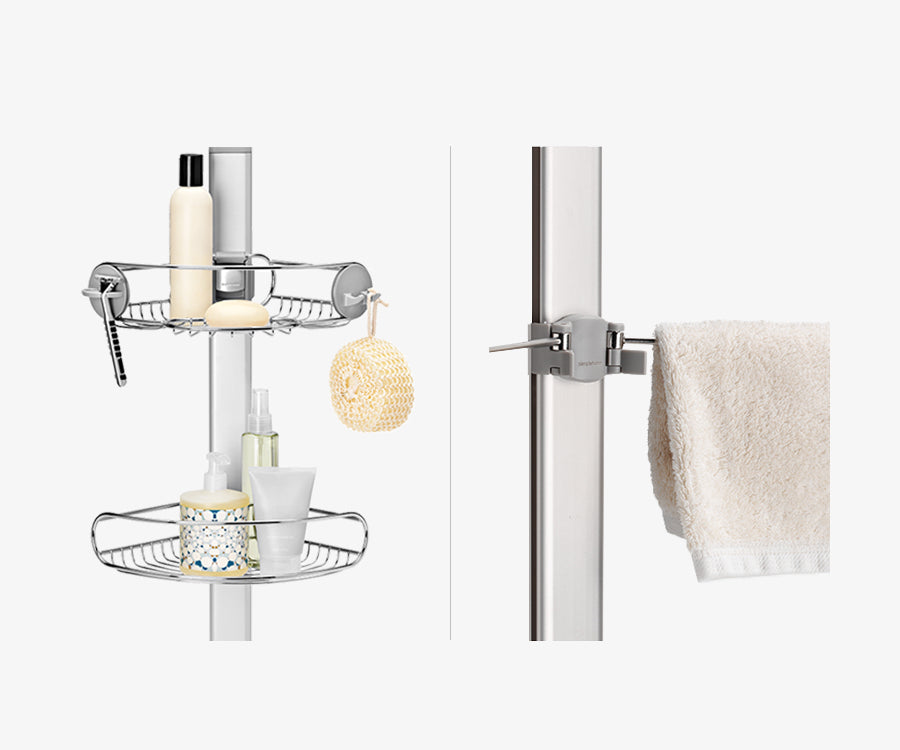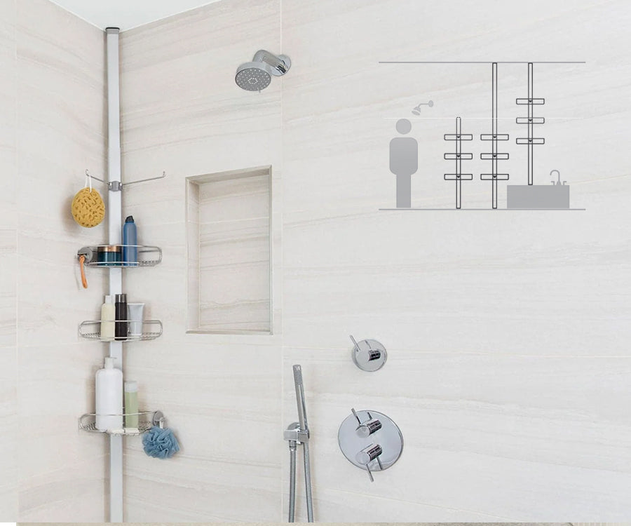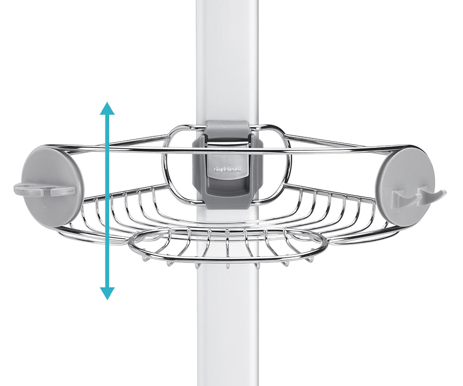 De versterkte aluminium klemstang met gasveer en gripvaste rubberen pootjes is uittrekbaar van 1,50 tot 2,40 meter (middelgroot) of van 1,80 tot 2,70 meter (groot), zodat hij geschikt is voor de meeste douches en badkuipen.