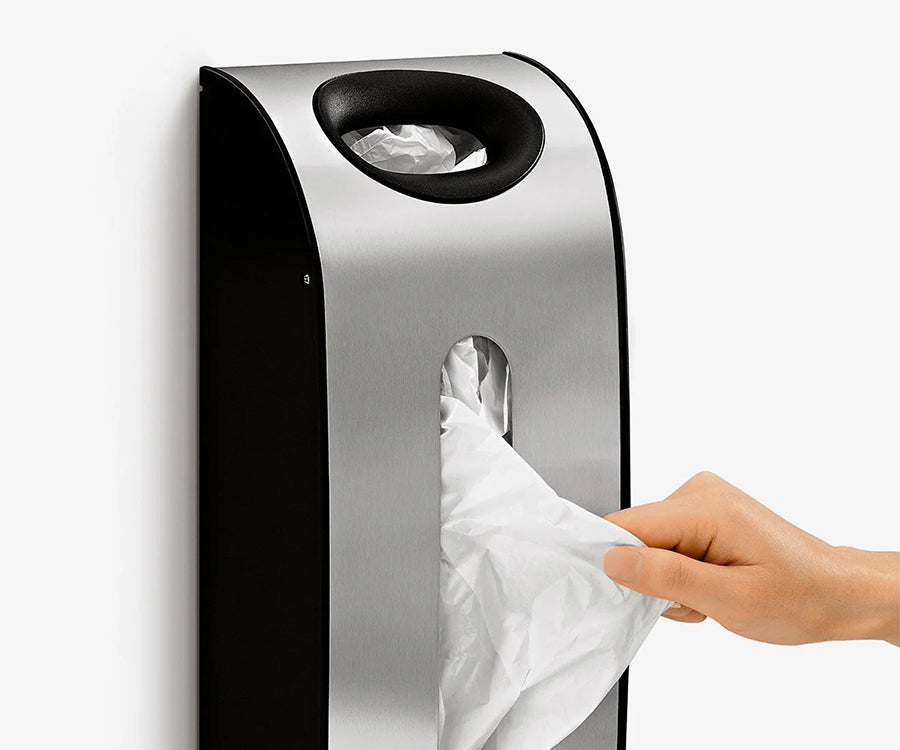 Stop eenvoudig boodschappentassen door de bovenste opening (maximaal 30), zodat ze netjes zijn weggeborgen. Als je klaar bent om ze te hergebruiken, trek je een tas uit de wijde opening aan de voorkant.